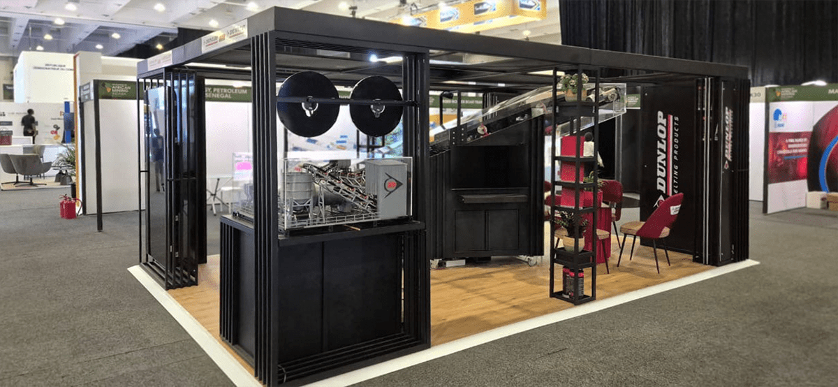 Designing and manufacturing the exhibition stand for Dunlop Belting Products at Mining Indaba 2026 was certainly one of them. Having worked closely with Dunlop Belting Products over the past year, the brief was intentionally open. They required a stand that would showcase their conveyor technologies and advanced sensory systems while positioning them as the forward-thinking, world-class brand they are.The response from MDM Creations and Dalco Engineering was bold and unconventional. A 6 x 4 metre stand fabricated entirely from steel — sleek, ultra-modern, and impossible to miss in a crowded exhibition hall. What truly sets it apart is that the structure is modular and fully reusable, transforming the initial investment into a long-term asset rather than a once-off build.